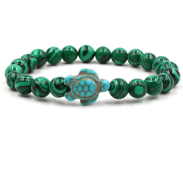 Natural Stone Sea Turtle Bracelet highly polished. As these are adjustable they fit almost any wrist. Ocean Charity Jewelry