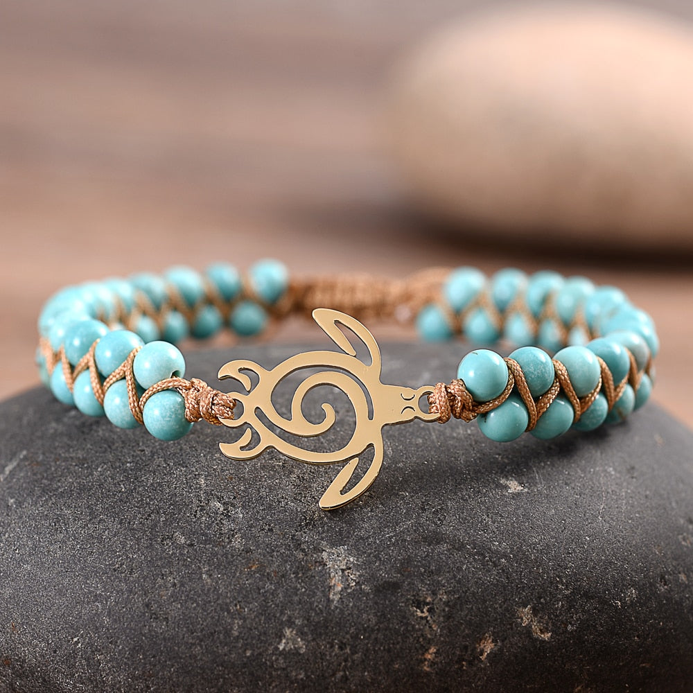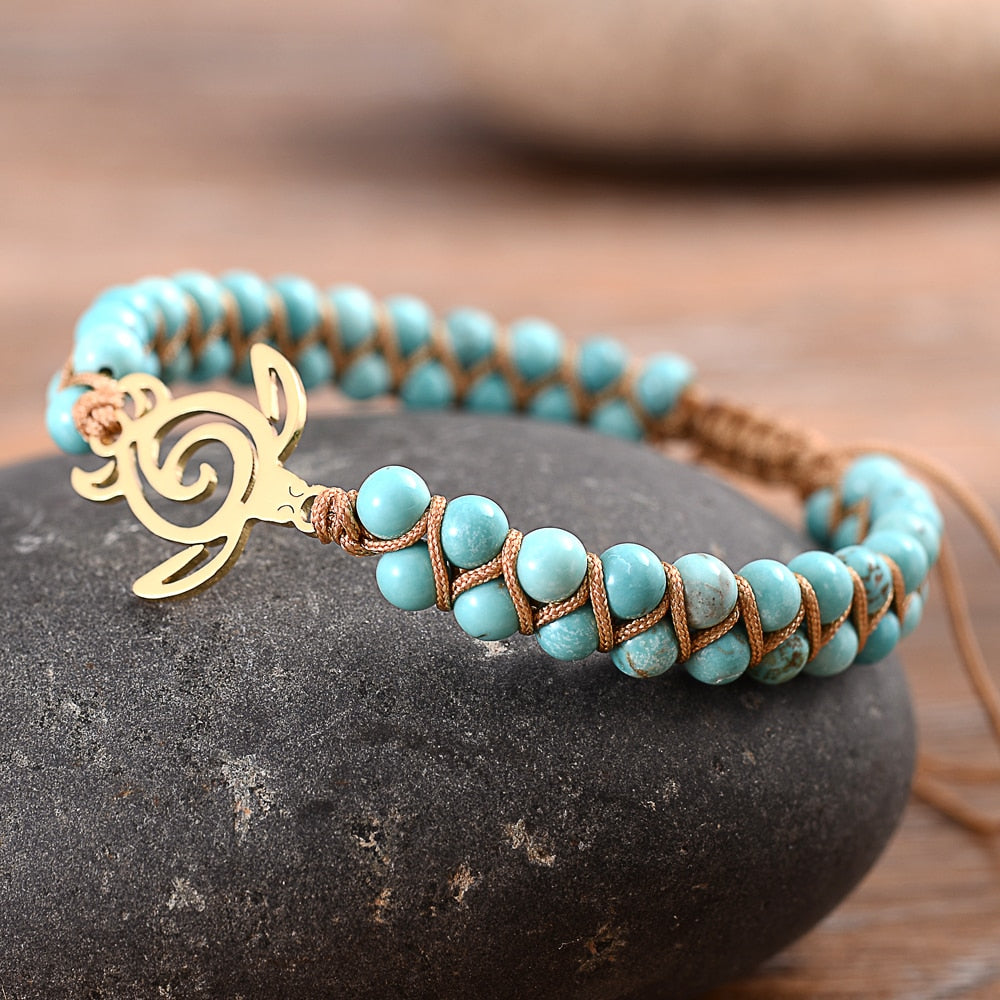 This super cute handmade wrap natural Stone Save Seaturtle Bracelet is as unique as you are.