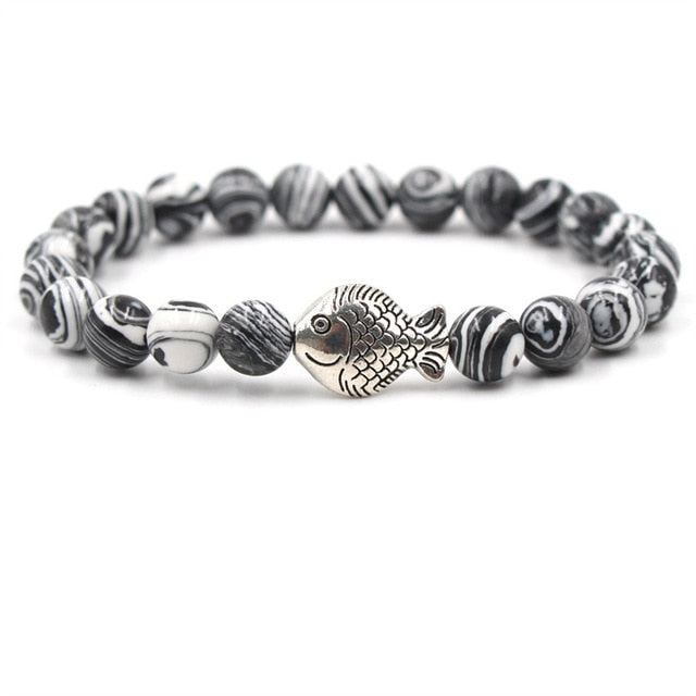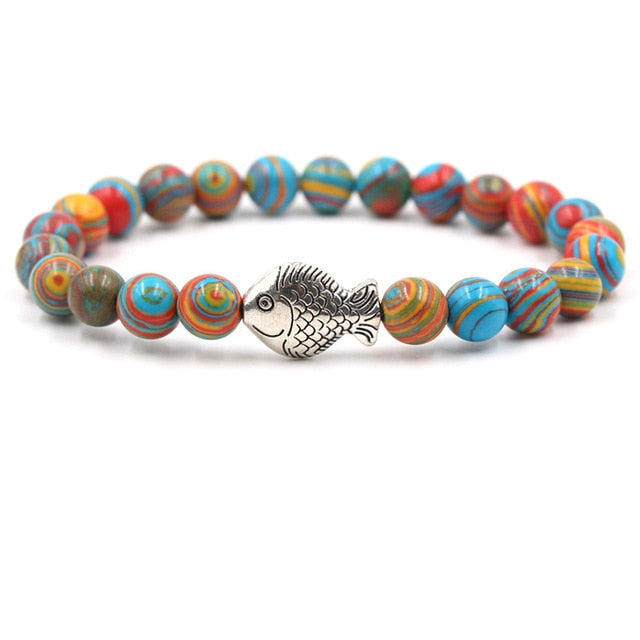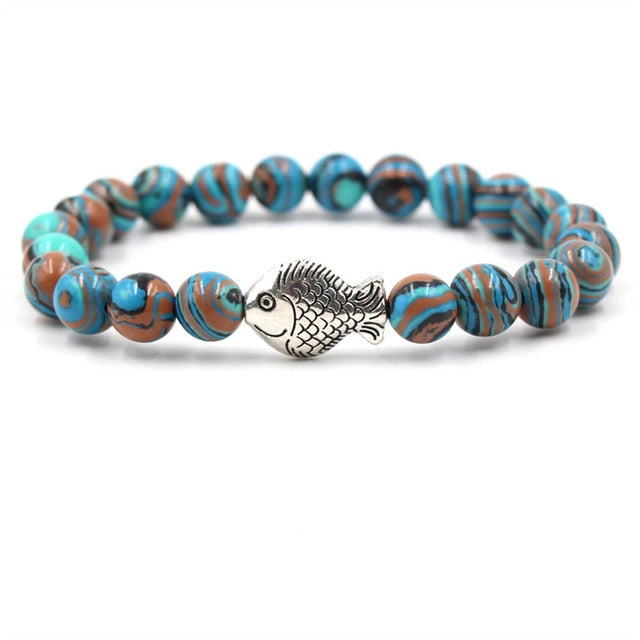Save Sea Life Jewelry Natural Stone Malachite Bead Bracelets Silver Fish 6 Styles Adjustable, Ocean Charity Jewelry