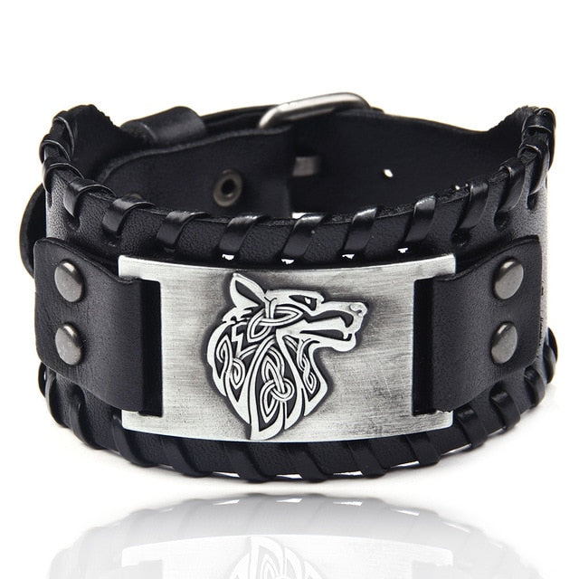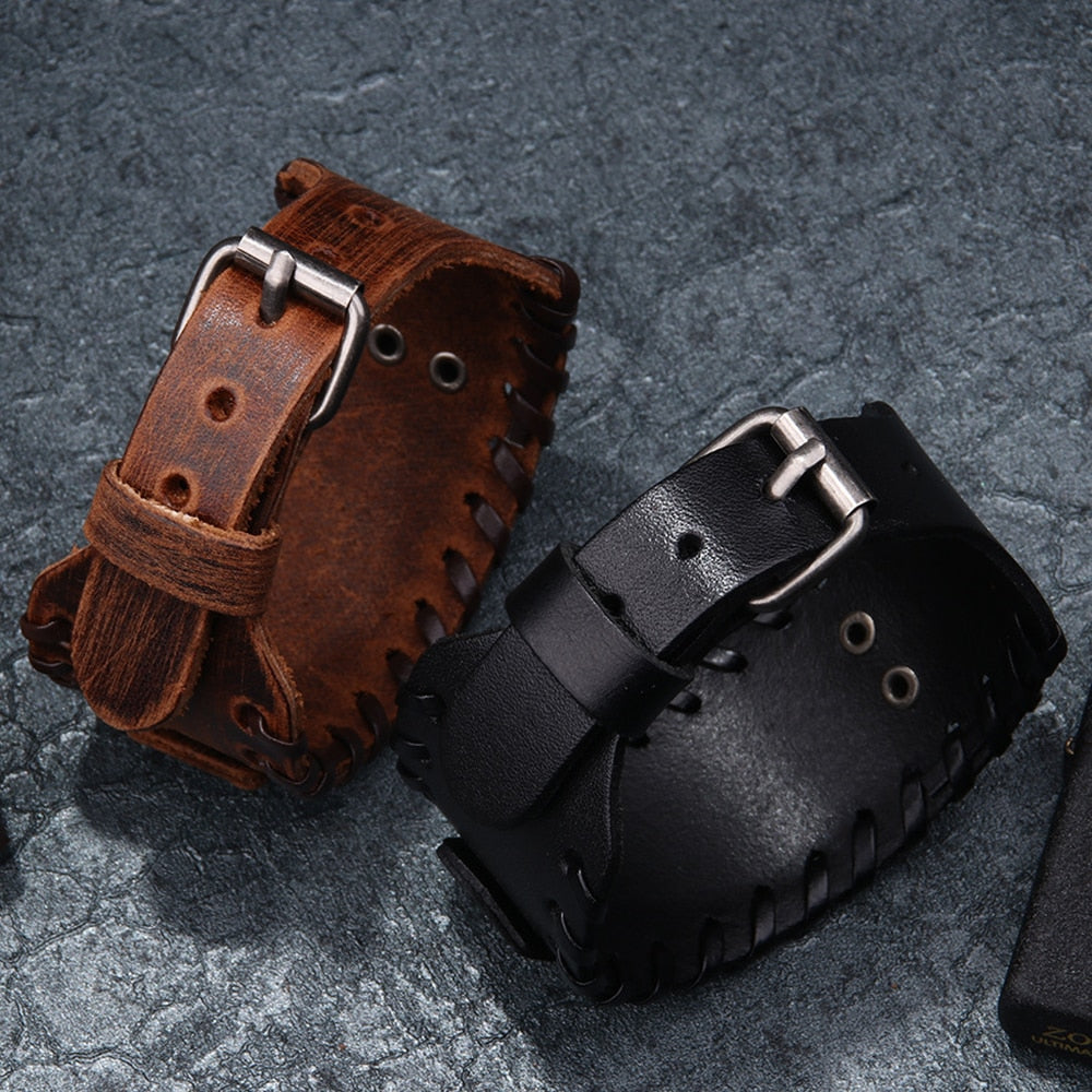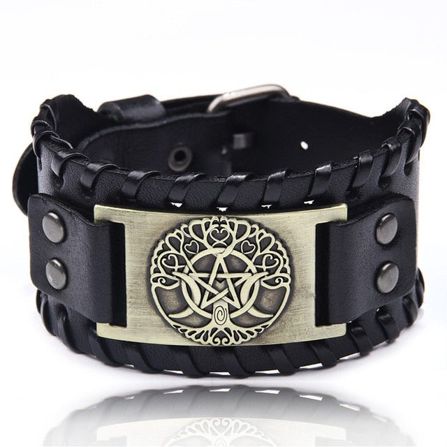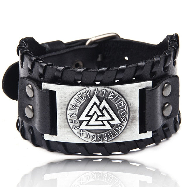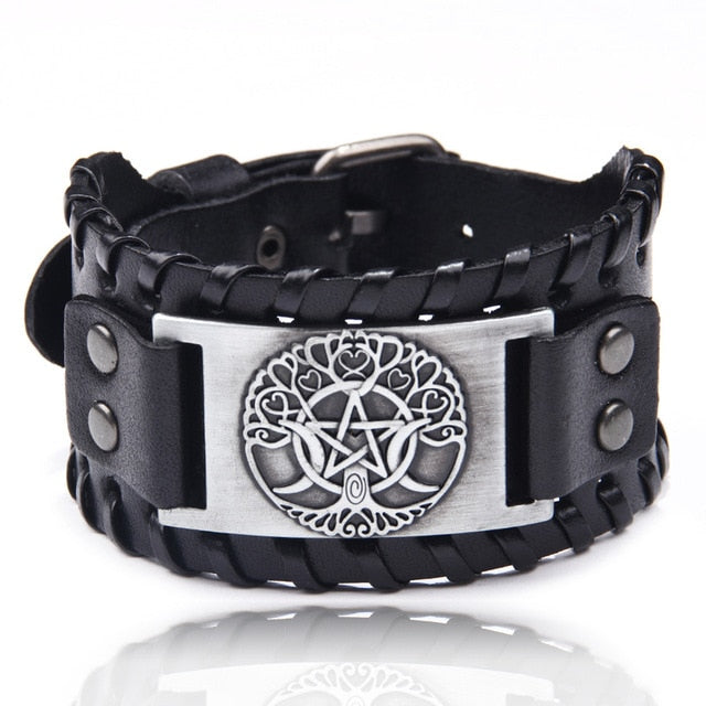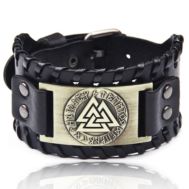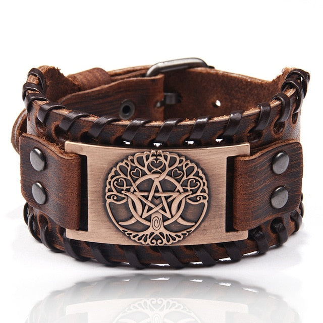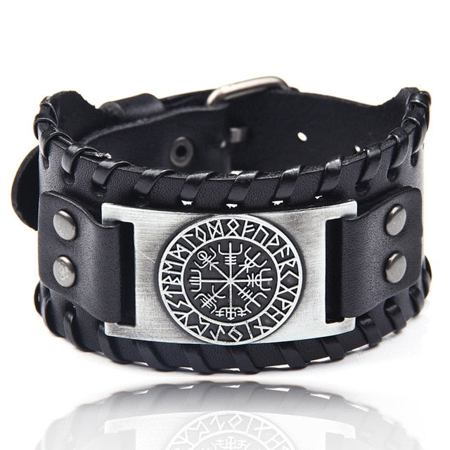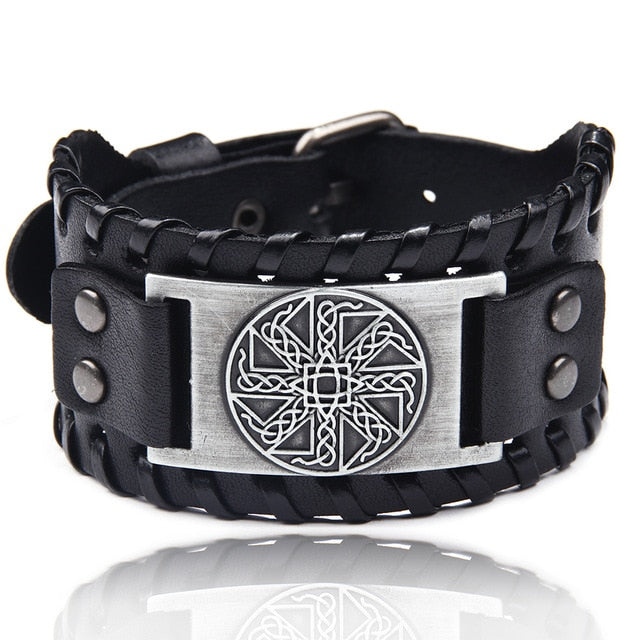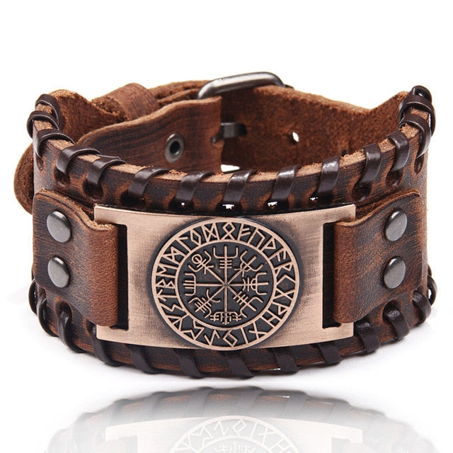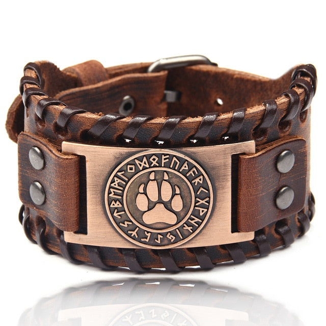 Viking Leather Cuff Bracelet Men Braided Rope, Ocean Conservation Jewelry