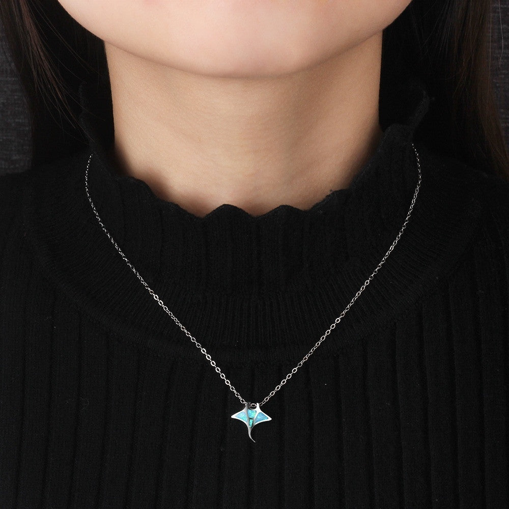 Save Ocean Animals Jewelry Necklace |  Manta Ray Necklace Boho Faux Opal,