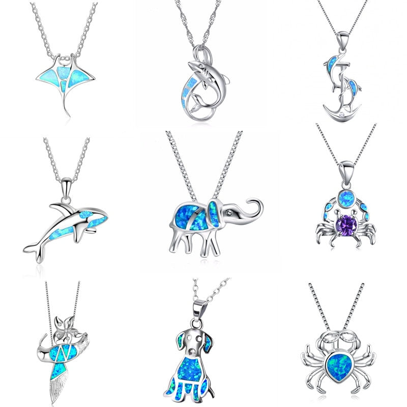Save the Ocean Animal Necklace, Blue Imitation Opal Chokers, This fun collection of assorted ocean and beach life jewelry is sure to have a cute ocean or beach necklace to call your own or they make a great gift. So pick you favorite Save the ocean animals necklace and call it your own. Proceeds from sales to ocean conservation charities so be proud to wear your commitment to helping the cause of saving sea and ocean life.