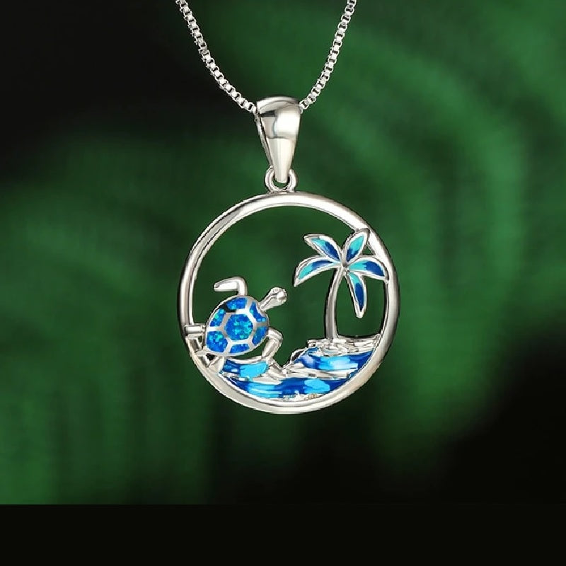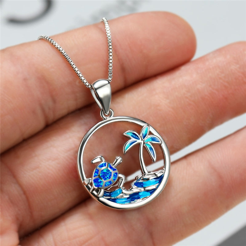 Super unique save the sea turtle necklace in a tropical island design ,This statement jewelry indicates your commitment to save the sea turtles. Its a perfect length for your casual wear or little black dress a great Ocean Conservation Jewelry conversation starter.