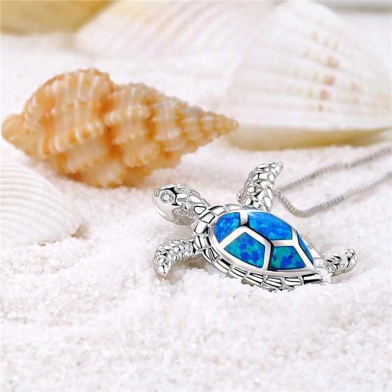 Save Sea Turtle Jewelry | Red / Blue/ Green Opal Sea Turtle Necklace – Save the Ocean Jewelry
