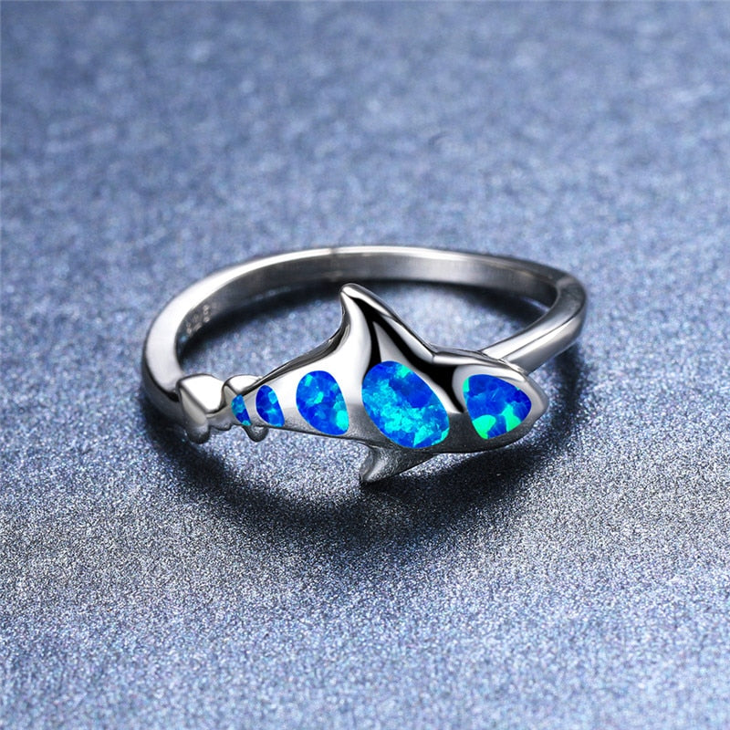 Save the Sharks Jewelry | White Blue Opal Shark Ring – Save the Ocean Jewelry