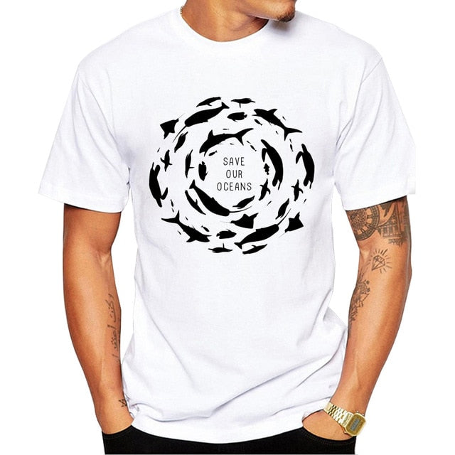 Save Our Oceans Men T-Shirt Short Sleeve Sharks Whales Turtles Tees, Save the Ocean Tshirts