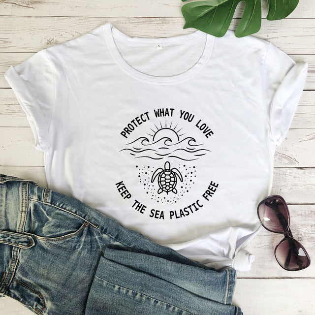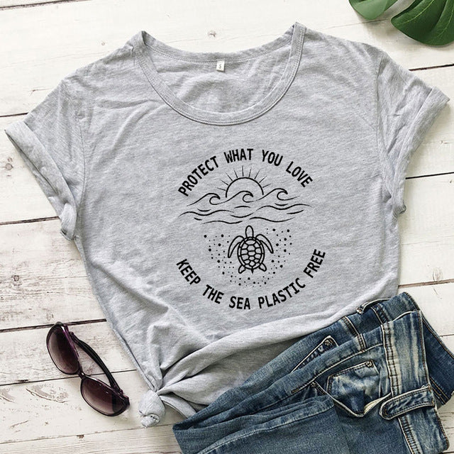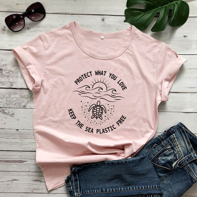 Protect What You Love, Keep The Sea Plastic Free T-shirt, Ethical Tees, Save the Ocean Tshirts