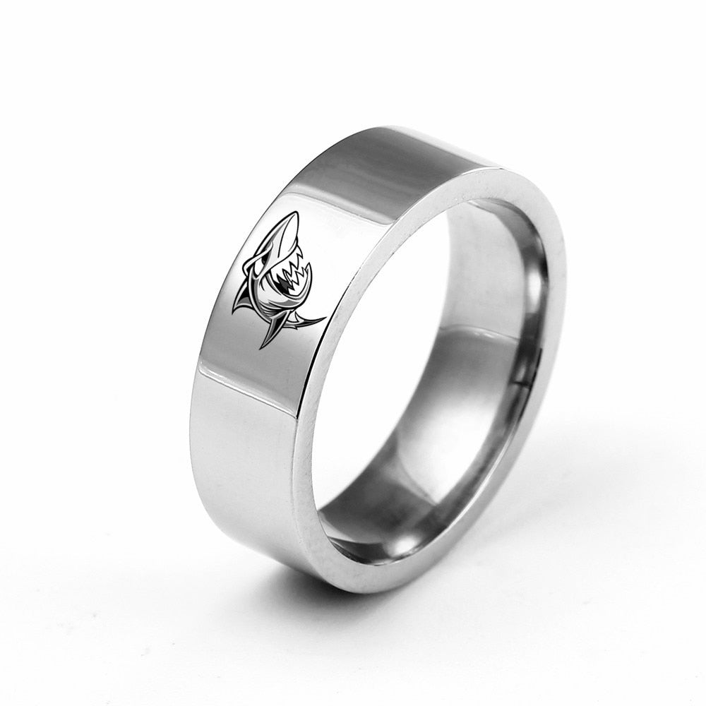 This cool etched stainless steel silver polished finish shark ring is just a fun piece. Save the Sharks Jewelry. A modern twist on your favorite beast of the deep blue the shark ring is for you. Its assured you will receive a ton of questions like where dd you get it ? However its limited so add to cart before they are gone.