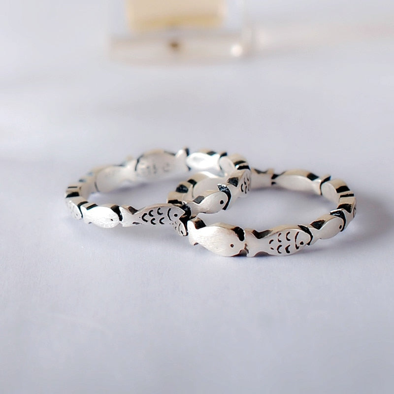 Super Cute Fish School 925 Sterling Silver Handmade Vintage Fish Ring Adjustable