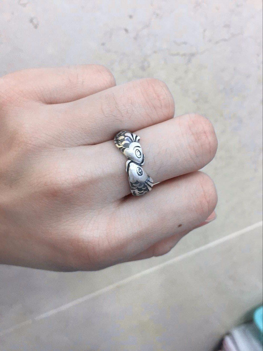 Save the Sea Life Jewelry Ethnic Style 925 Sterling Silver Kissing Fish Ring